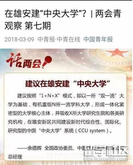 全國政協(xié)委員余德輝建議,按照“1+N+X”模式,即以一所“雙一流”大學(xué)為基礎(chǔ),有機(jī)重組N所一流學(xué)科大學(xué),形成一體化緊密型的大學(xué)核心主體,并吸收X所大學(xué)研究生院和各類研究機(jī)構(gòu),在雄安新區(qū)共同建設(shè)新時(shí)代綜合性、國際化、研究型的中國“中央大學(xué)”系統(tǒng)(CCU system)。