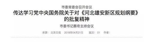 據(jù)北京日?qǐng)?bào)報(bào)道,日前,北京市委常委會(huì)召開會(huì)議,傳達(dá)學(xué)習(xí)黨中央、國務(wù)院關(guān)于對(duì)《河北雄安新區(qū)規(guī)劃綱要》的批復(fù)精神。