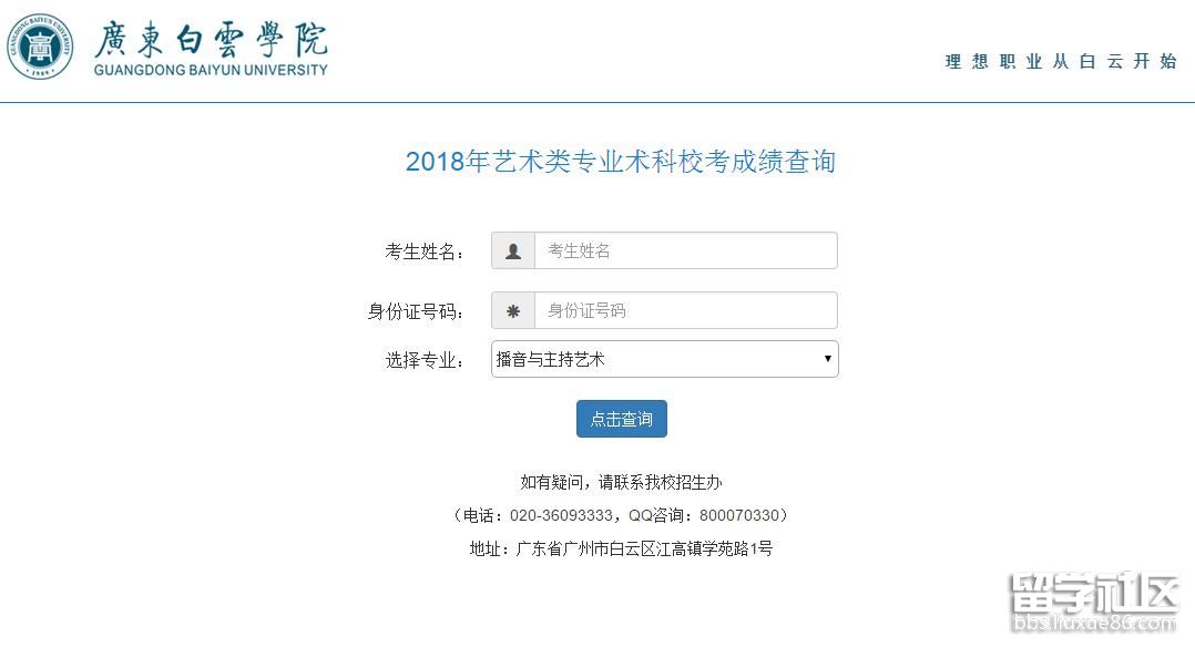 廣東白云學(xué)院2018藝術(shù)??汲煽?jī)查詢(xún)系統(tǒng)