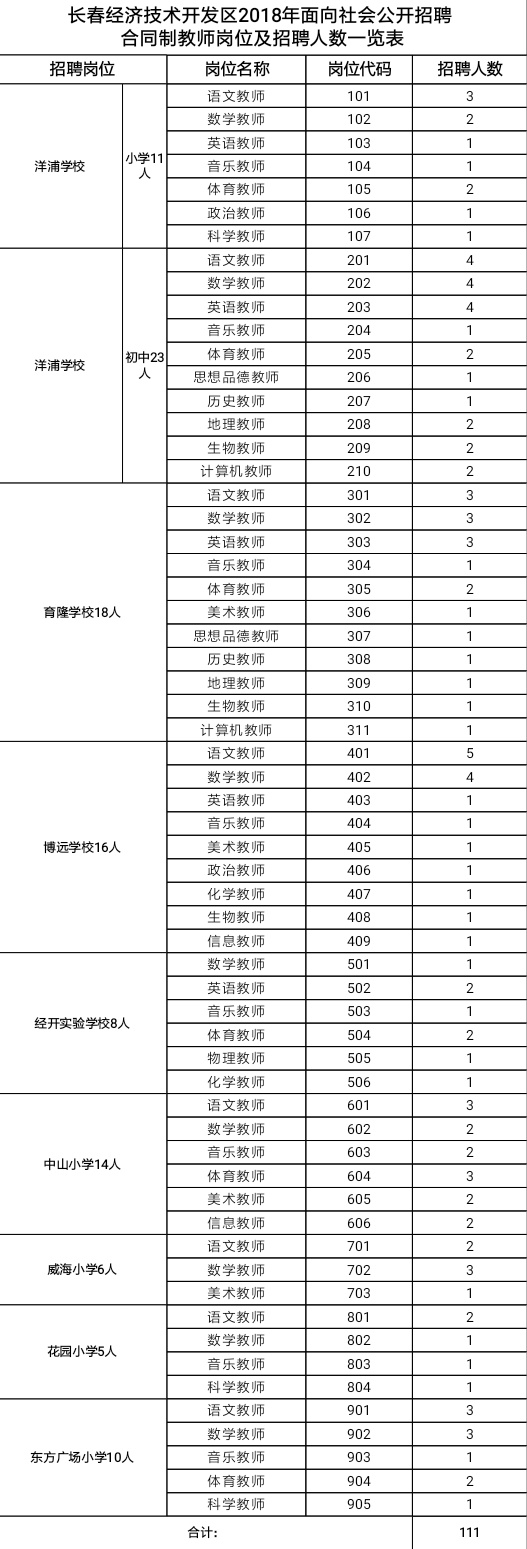 一、長春經(jīng)濟(jì)技術(shù)開發(fā)區(qū)教師招聘崗位和人數(shù)