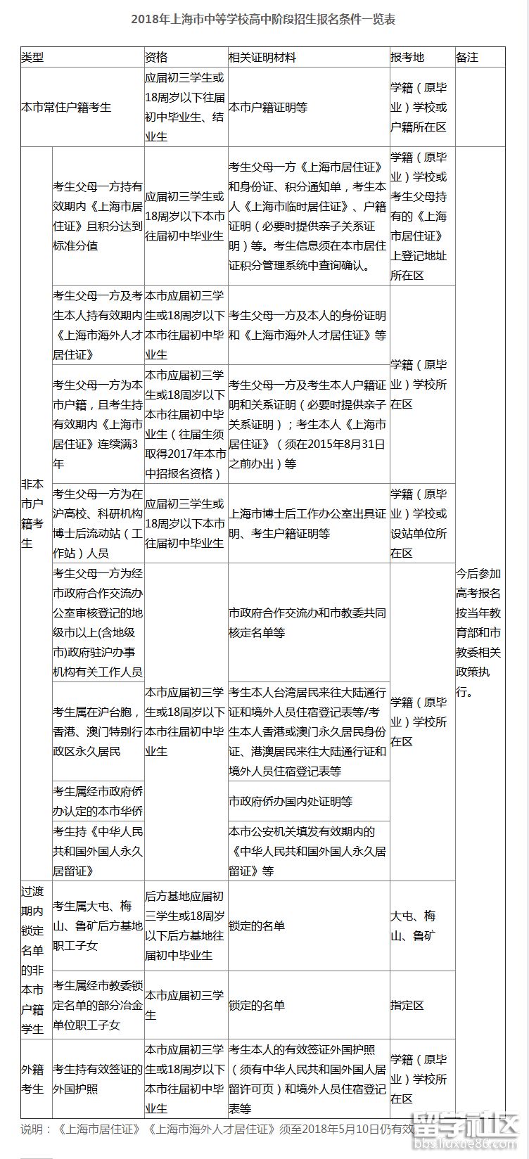 1.2018年上海市中等學(xué)校高中階段招生報名條件一覽表