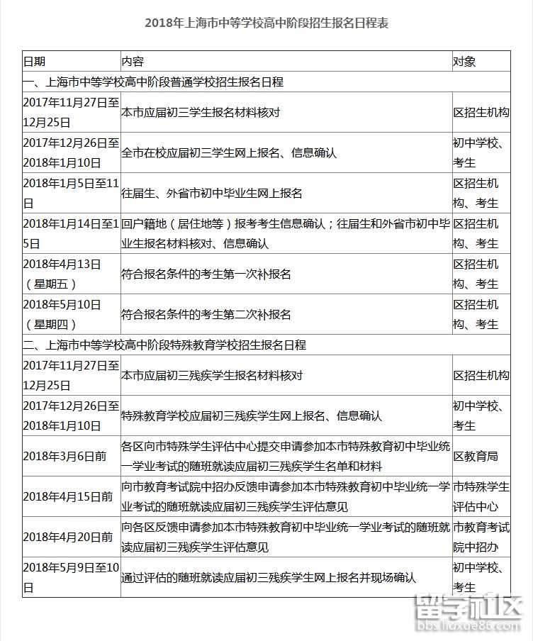 2.2018年上海市中等學(xué)校高中階段招生報名日程表