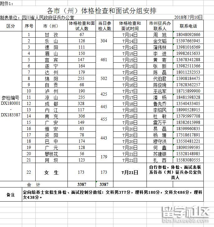(二)面試及心理測(cè)試。安排在雙流區(qū)老年大學(xué)(地址:雙流區(qū)福田路一段20號(hào)),考生報(bào)到時(shí)間為本人參檢日9時(shí)(體檢結(jié)束后即可前往);因故不能于當(dāng)日17時(shí)前報(bào)到的考生,務(wù)于翌日9時(shí)報(bào)到(報(bào)到截止時(shí)間為7月21日16時(shí))。