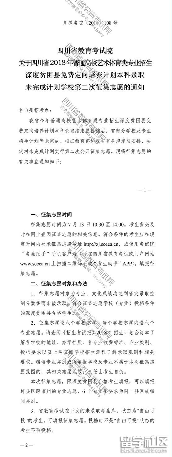 四川2018藝術體育類專業(yè)招生貧困縣免費定向培養(yǎng)計劃本科第二次征集志愿