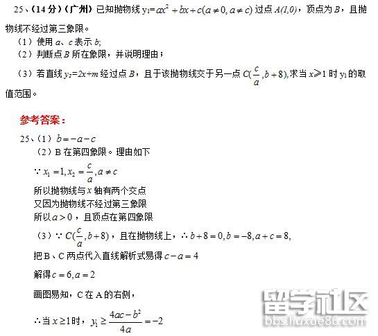 25、(14分)(廣州)已知拋物線y1=過點A(1,0),頂點為B,且拋物線不經過第三象限。