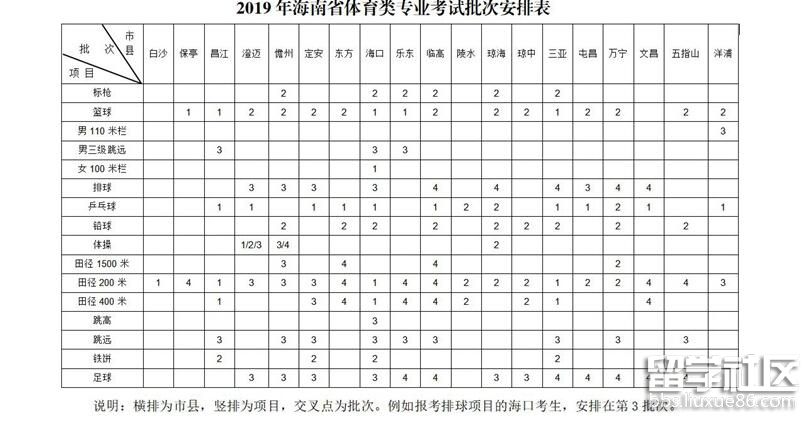 2.2019年海南省體育類專業(yè)考試批次安排表
