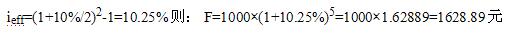 【例題】現(xiàn)在存款 1000 元,年利率 10%,半年復(fù)利一次。問 5 年末存款金額為多少?