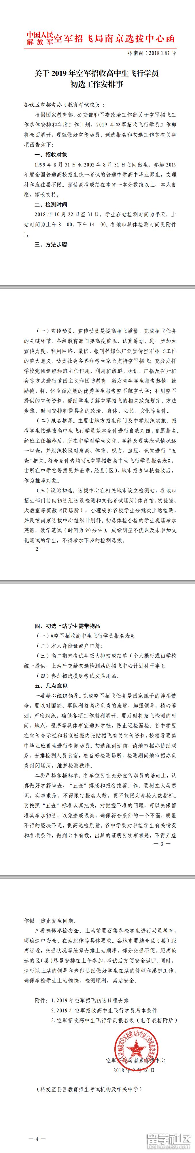 2019江西空軍招飛初選日程安排