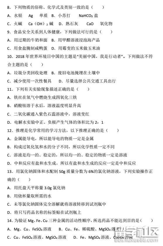 中考,心態(tài)最為重要。希望大家能保持一顆平常的心態(tài),積極迎戰(zhàn)!本網(wǎng)站中考欄目及時(shí)為廣大考生提供《2018年遼寧撫順中考化學(xué)試卷及答案》,更多信息請(qǐng)關(guān)注我們網(wǎng)站的更新!