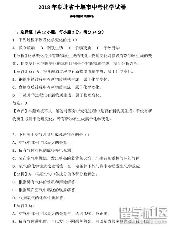 出國留學(xué)網(wǎng)中考欄目為您提供《2018年湖北十堰中考化學(xué)試題及答案》,希望考生們?nèi)〉煤贸煽?。更多相關(guān)資訊敬請關(guān)注本網(wǎng)站更新!