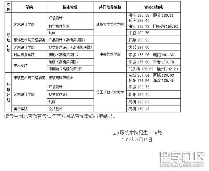 根據(jù)《北京服裝學(xué)院2018年面向北京市招收 “雙培計(jì)劃”、“外培計(jì)劃”本科生招生簡(jiǎn)章》及考生成績(jī),經(jīng)研究確定: