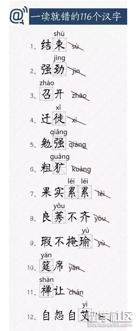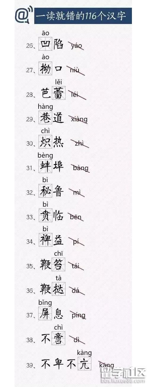 有些字,你雖然認識,但卻讀不對。巷(hàng)道、高麗(lí)、芭蕾(lěi)、拗(ào)口、筵( yán)席、殷(yān)紅、給(jǐ)予……