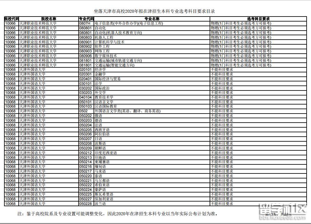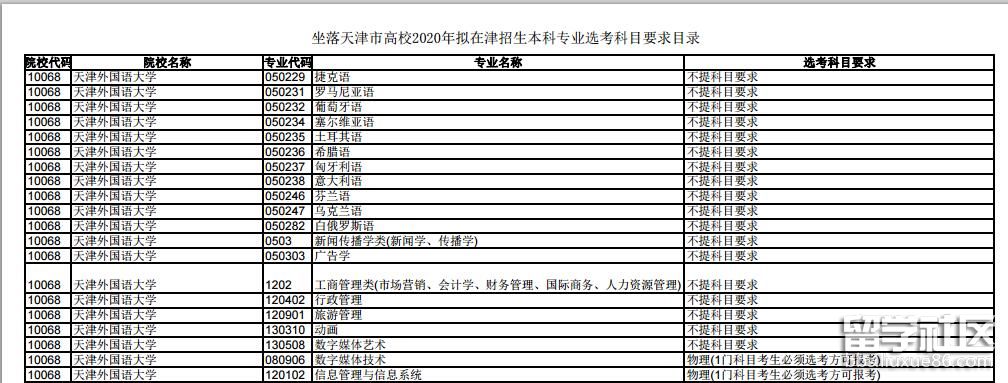 天津普通高校2020年在津招生專業(yè)選考科目要求