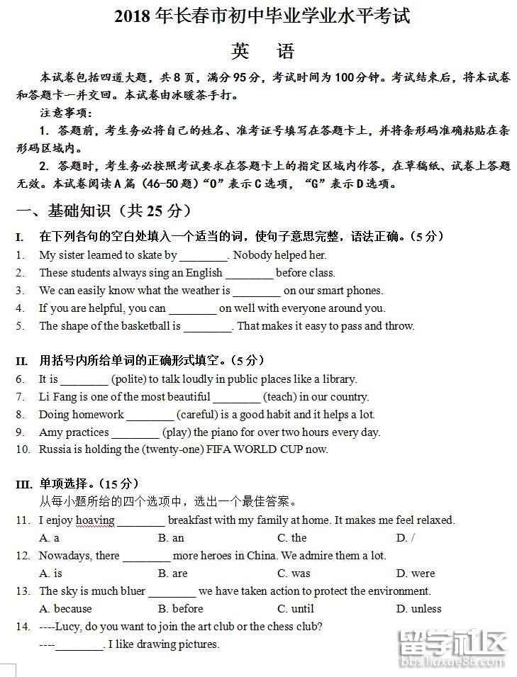 本網(wǎng)站為您精心準(zhǔn)備了《2018年吉林長春中考英語真題及答案》,希望可以幫到您,也祝您中考成功!更多中考資訊信息請關(guān)注本站喲!