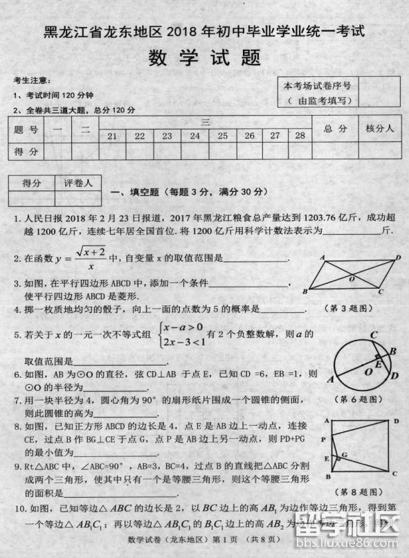 不管結(jié)果如何,過(guò)程值得回味!祝你中考順利,金榜題名!本網(wǎng)站中考欄目為您提供的《2018年黑龍江龍東地區(qū)中考數(shù)學(xué)真題及答案》,更多中考資訊請(qǐng)關(guān)注我們網(wǎng)站更新。