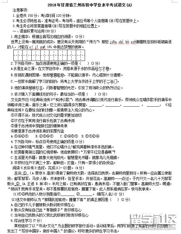 2018年中考已經(jīng)結(jié)束,你是否在這場重要的考試中發(fā)揮出了最好的水平呢?本網(wǎng)站中考欄目為您提供《2018年甘肅蘭州中考語文真題及答案》。如果您想要找的真題及答案沒有顯示,可按Ctrl+F5進(jìn)行刷新。
