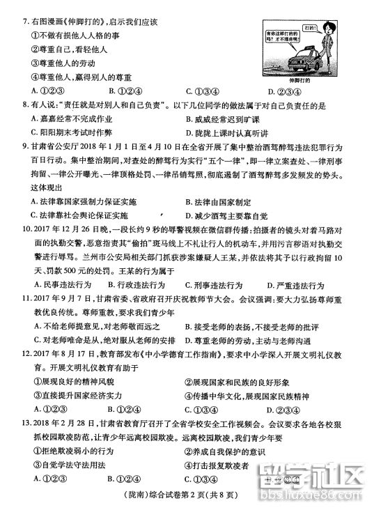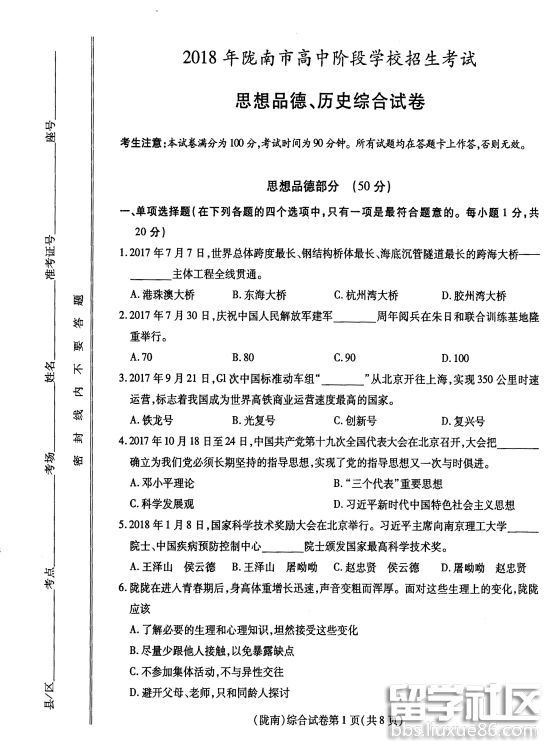 2018年中考已經(jīng)拉下了帷幕,本網(wǎng)站小編為你整理了《2018年甘肅隴南中考政治真題》,祝福你們中考成功!更多中考信息請持續(xù)關(guān)注本網(wǎng)站中考欄目!