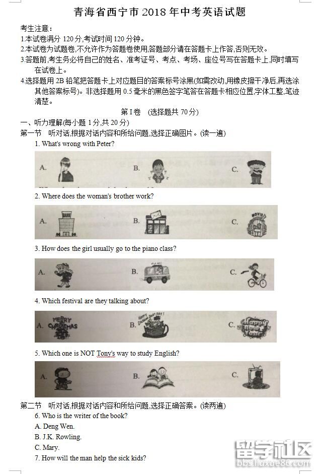 值此中考畢業(yè)之際來(lái)跟小編一起看看《2018年青海西寧中考英語(yǔ)真題及答案》吧!祝您中考取得優(yōu)異的成績(jī)!更多中考資訊請(qǐng)關(guān)注本網(wǎng)站中考欄目!