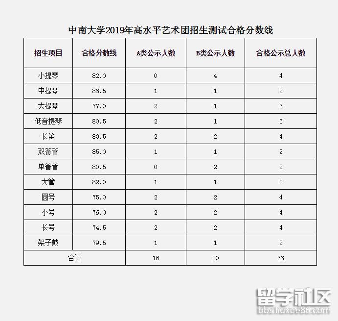 中南大學(xué)2019高水平藝術(shù)團招生測試合格線