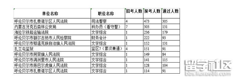 一、呼倫貝爾報(bào)名人數(shù)最多十大崗位