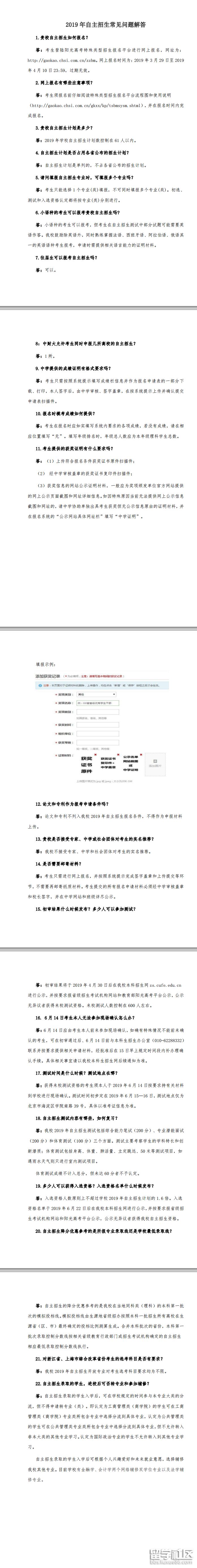 (二)網上確認:獲得來校測試資格的考生,須在規(guī)定時間內登錄報名平臺確認參加我校自主招生測試,未在規(guī)定時間內確認考試的考生,視為自動放棄測試資格。具體要求于2019年4月30日后在我校本科生招生網公布。