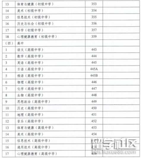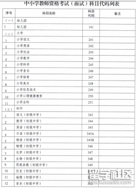 中小學(xué)教師資格考試(面試)科目代碼列表