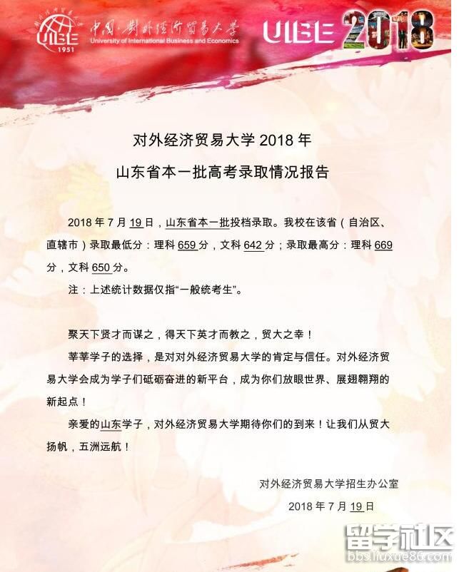 對(duì)外經(jīng)濟(jì)貿(mào)易大學(xué)2018年山東省本一批高考分?jǐn)?shù)線