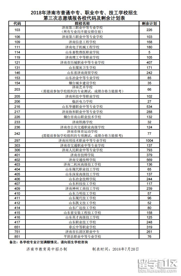 2018濟(jì)南普通中專(zhuān)、職業(yè)中專(zhuān)、技工學(xué)校招生第三次志愿填報(bào)學(xué)校代碼及剩余計(jì)劃