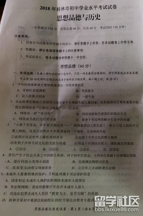中考的終聲已經(jīng)敲響,你發(fā)揮出了自己最好的水平嗎?下面是本網(wǎng)站為考生們提供的《2018年廣西桂林中考政治試題及答案》。希望對(duì)考生有所幫助。更多中考資訊請(qǐng)關(guān)注中考欄目!
