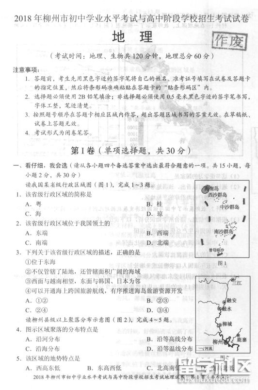 十年寒窗苦讀日,只盼金榜題名時(shí)。本網(wǎng)站中考欄目為您準(zhǔn)備了《2018年廣西柳州中考地理真題及答案》,來(lái)看一看吧!愿你中考考出理想的成績(jī),進(jìn)入向往的學(xué)校。