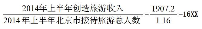 2014 年上半年,北京市平均接待每人次旅游者創(chuàng)造旅游收入約多少元?