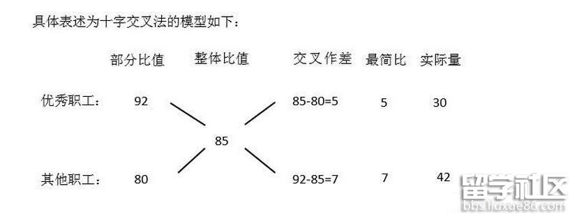 【點(diǎn)撥】本題屬于盈余虧補(bǔ)問題;優(yōu)秀員工與非優(yōu)秀員工混合就正好是全體員工,題目分別有優(yōu)秀員工平均分,非優(yōu)秀員工平均分,全體員工平均分,符合平均數(shù)混合問題,可以采用十字交叉法。