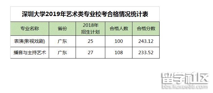 深圳大學(xué)2019藝術(shù)類(lèi)??汲煽?jī)查詢(xún)及藝考合格線