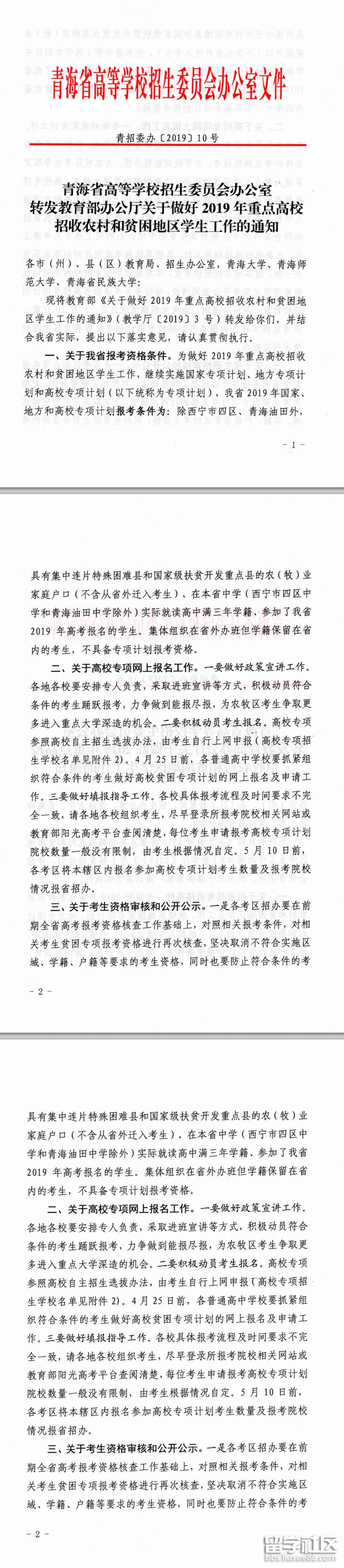 青海2019重點(diǎn)高校招收農(nóng)村和貧困地區(qū)學(xué)生工作的通知