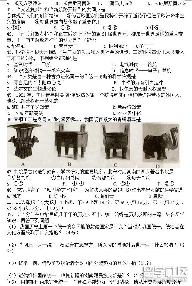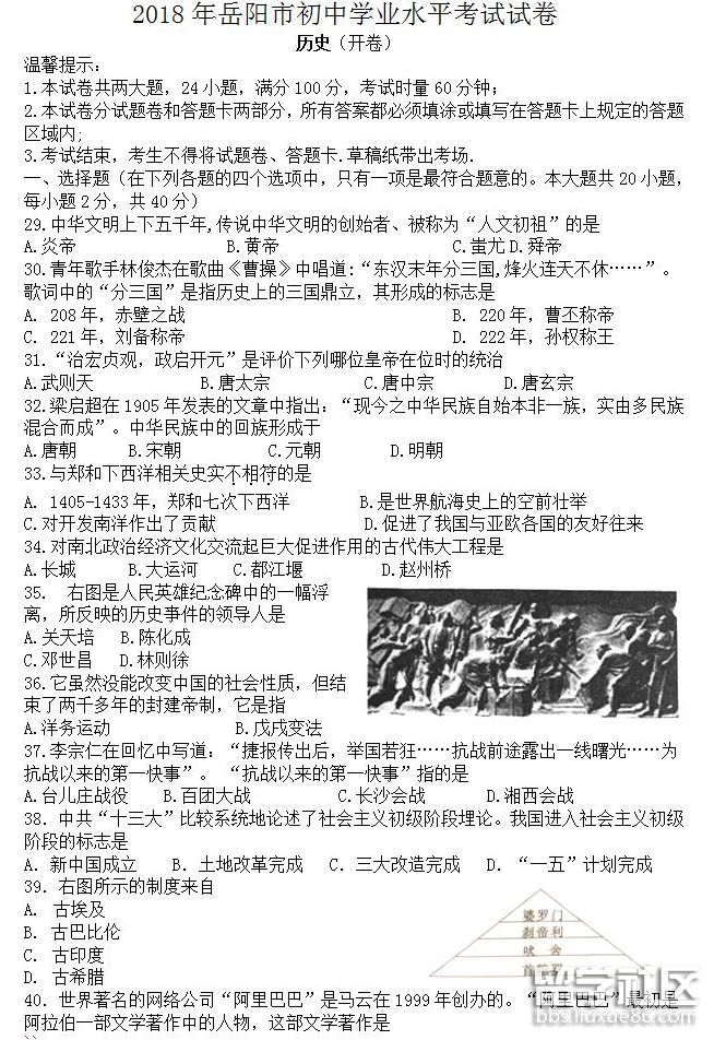 出國留學(xué)網(wǎng)祝你中考拿高分,鯉魚跳龍門!中考欄目會及時(shí)為廣大中考考生提供《2018年湖南岳陽中考?xì)v史試卷及答案》,大家可按Ctrl+D收藏本網(wǎng)站!
