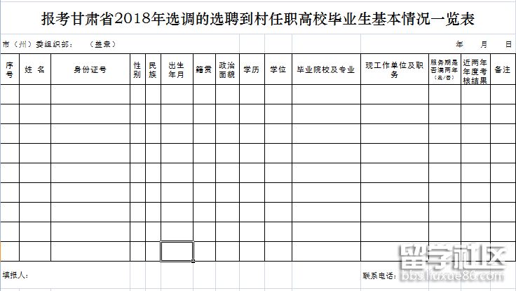 《報(bào)考甘肅省2018年選調(diào)的選聘到村任職高校畢業(yè)生基本情況一覽表》