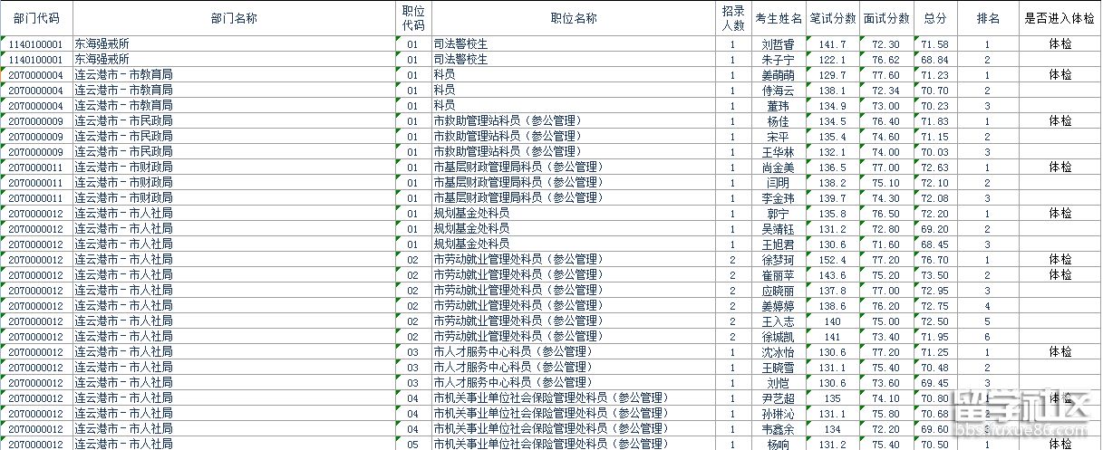 點擊附件查看詳情(百度云盤):連云港市2018年公務員招錄綜合成績公布