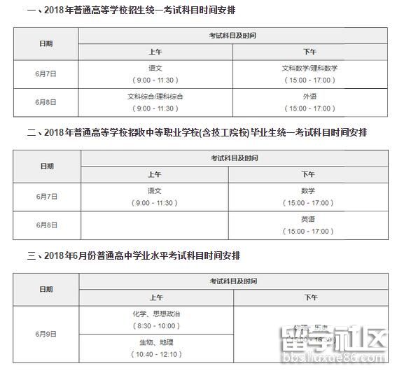 2018廣東高考和6月份高中學(xué)考科目時(shí)間安排