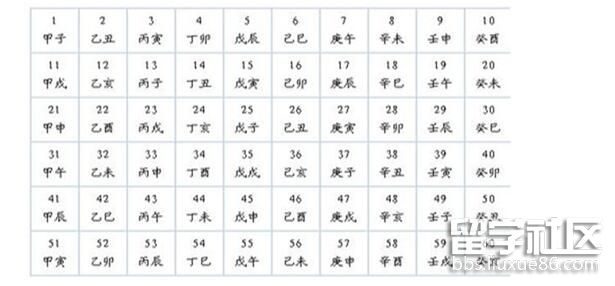 天干地支組合成如下六十個計時序號,作為紀(jì)年、月、日、時的名稱,叫“干支紀(jì)年法”。
