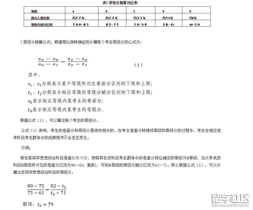 (一)劃分等級,將卷面分轉換為等級。把每門選擇性考試科目的考生群體依據卷面分從高到低進行排序,依據考生群體成績的統(tǒng)計分布,以一定的人數比例將該選考科目考生群體劃分為若干個等級,每個考生按照其卷面分在該選考科目考生群體中的排序,對應到某個等級,從而將所有考生的卷面分轉換成等級。