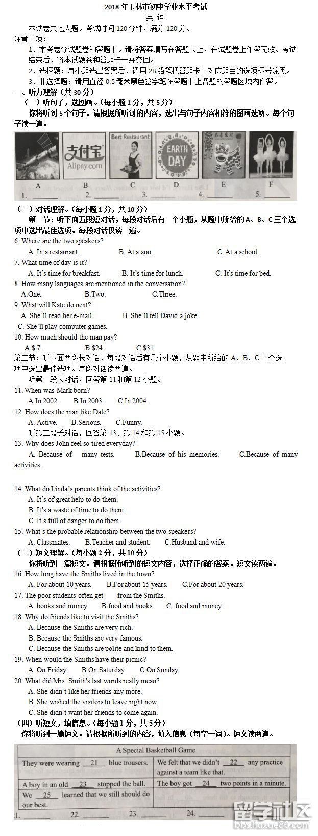 2018年中考圓滿結(jié)束,許多朋友一定很想知道今年的中考考了哪些內(nèi)容吧?本網(wǎng)站中考欄目第一時(shí)間為您提供《2018年廣西玉林中考英語(yǔ)真題及答案》,歡迎查閱!請(qǐng)持續(xù)關(guān)注本站。