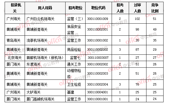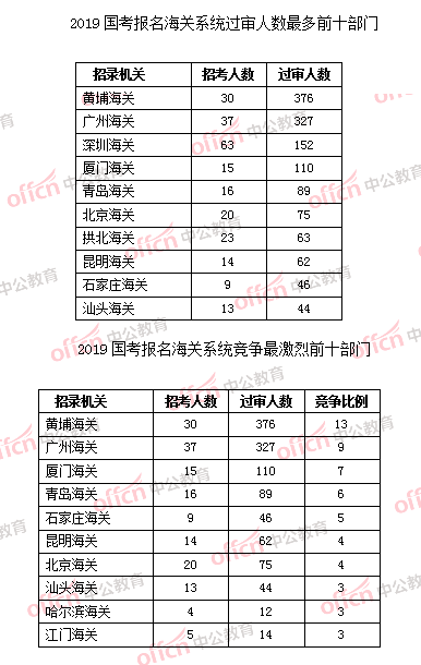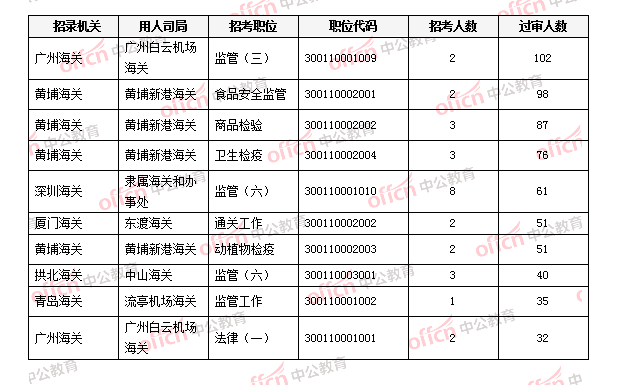 2019國(guó)考報(bào)名海關(guān)系統(tǒng)過(guò)審人數(shù)最多前十職位