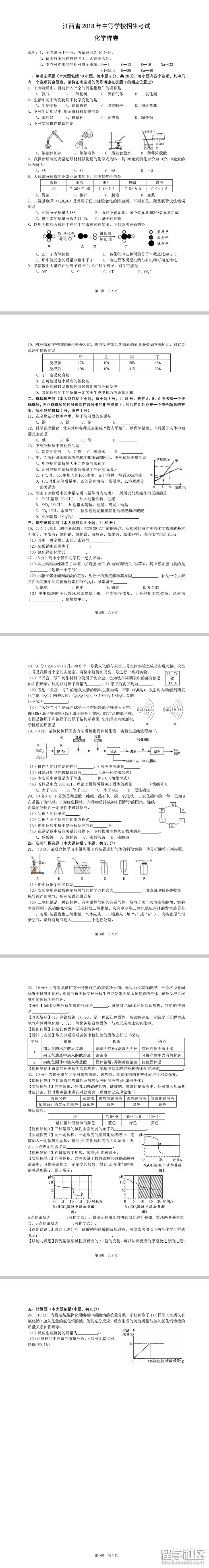 出國留學(xué)網(wǎng)江西中考頻道為廣大考生提供2018江西省中考化學(xué)樣卷,希望對大家有所幫助。