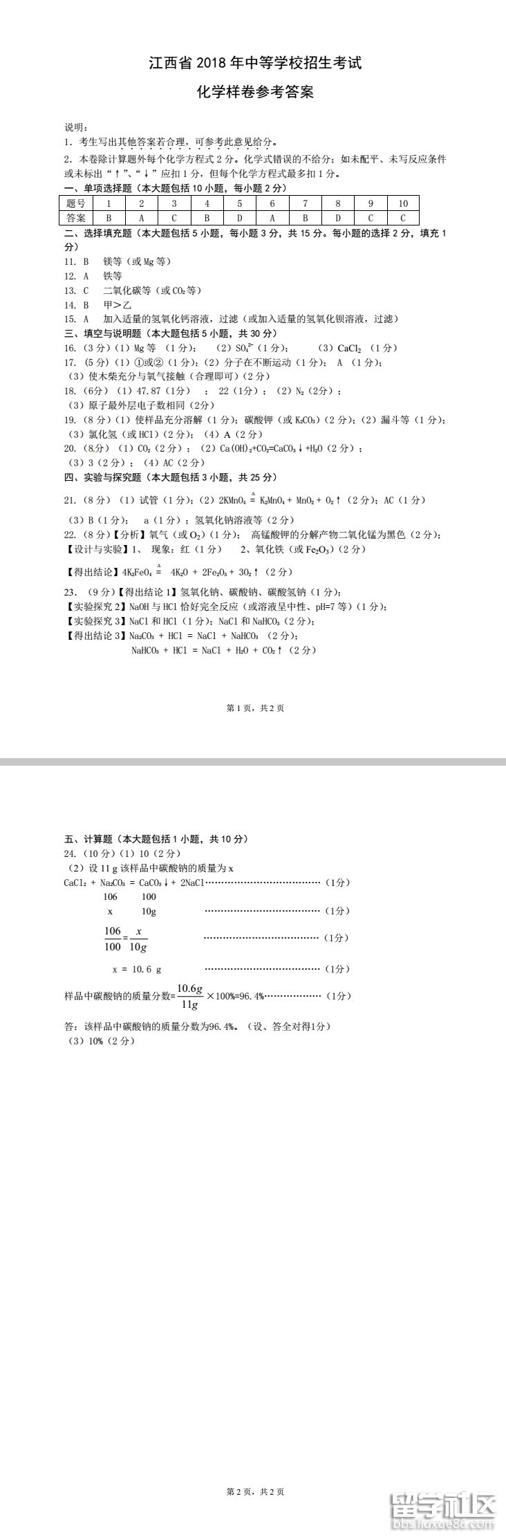 出國留學(xué)網(wǎng)江西中考頻道為廣大考生提供2018江西省中考化學(xué)樣卷答案,希望對大家有所幫助。