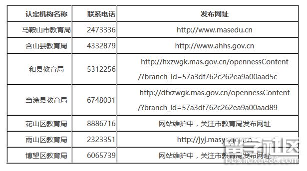 二、馬鞍山市、各縣區(qū)教師資格認(rèn)定機構(gòu)聯(lián)系電話、發(fā)布網(wǎng)址一覽表