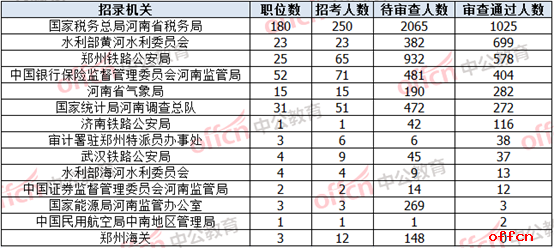 截止10月24日9時,通過審核人數(shù)前三位的部門依次是:國家稅務(wù)總局河南省稅務(wù)局、水利部黃河水利委員會、鄭州鐵路公安局,三部門通過審核總?cè)藬?shù)達(dá)2302人,占通過審核總?cè)藬?shù)的66.13%。