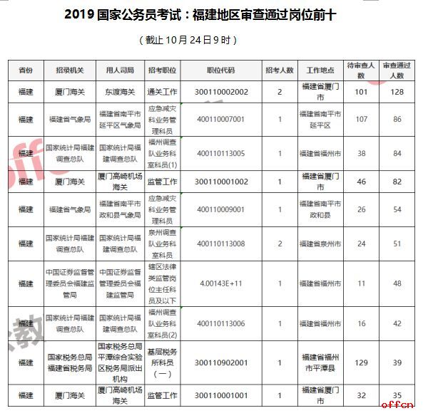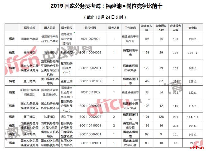 一、福建地區(qū)報(bào)名人次前十的國考職位,占福建省總報(bào)考人次97%