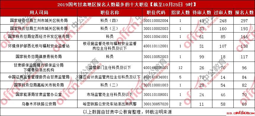 三、2019甘肅國考報(bào)名人數(shù)統(tǒng)計(jì): 各職位報(bào)名人數(shù)分析