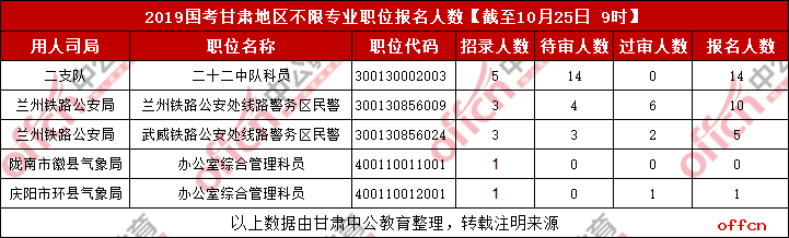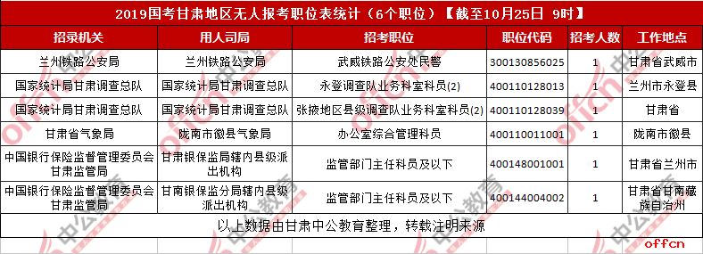五、2019甘肅國考報(bào)名人數(shù)統(tǒng)計(jì):無人報(bào)考職位報(bào)名數(shù)據(jù)