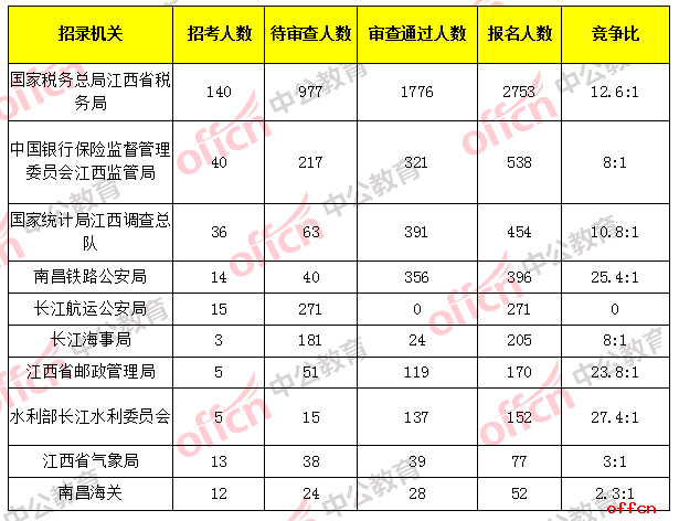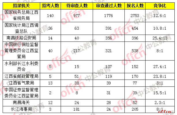 國(guó)考江西審核人數(shù)最多的十大招錄機(jī)關(guān)